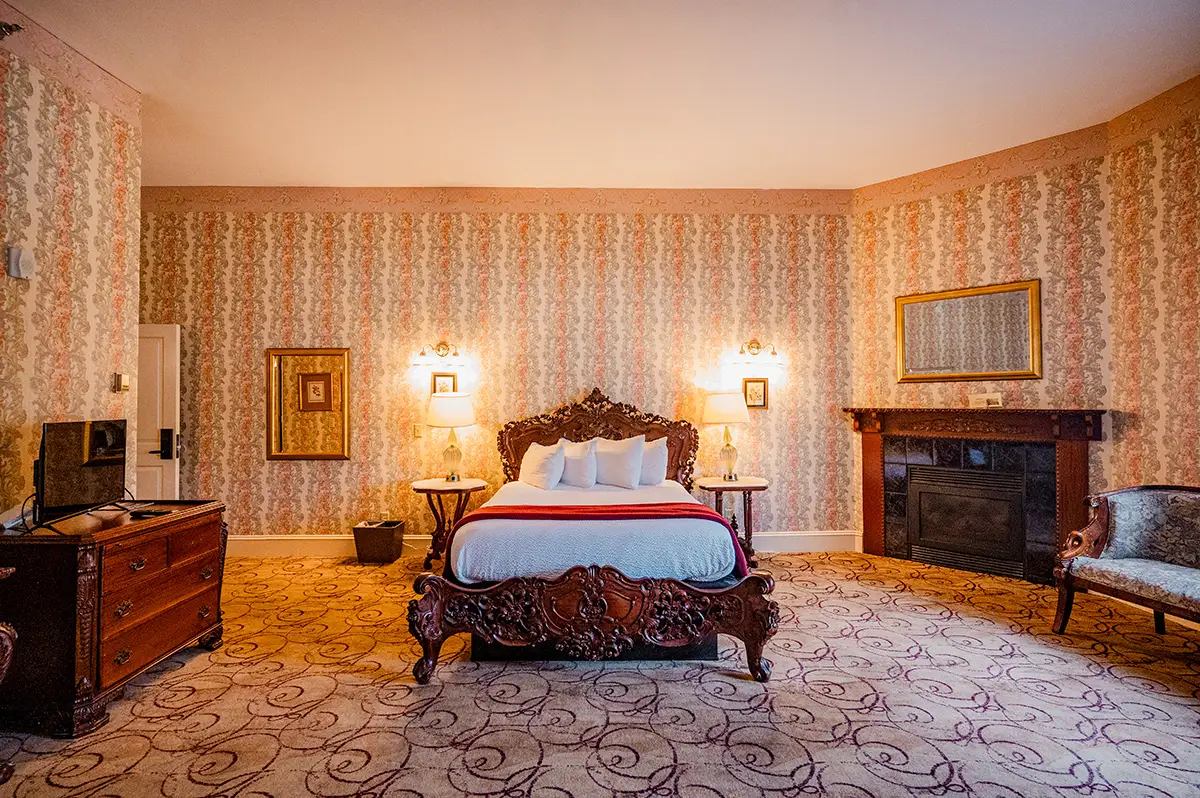 The Bridgeview Suites at one of the best Stillwater Hotels invite you to enjoy both space and style, featuring a plush queen bed, a cozy sitting area with a Murphy bed, and a luxurious double whirlpool tub. On cool evenings, the glow of the gas fireplace creates a perfect setting for unwinding, and in select suites, river views add an extra touch of Stillwater magic.