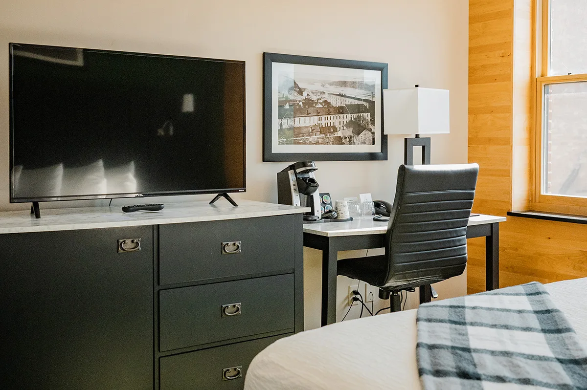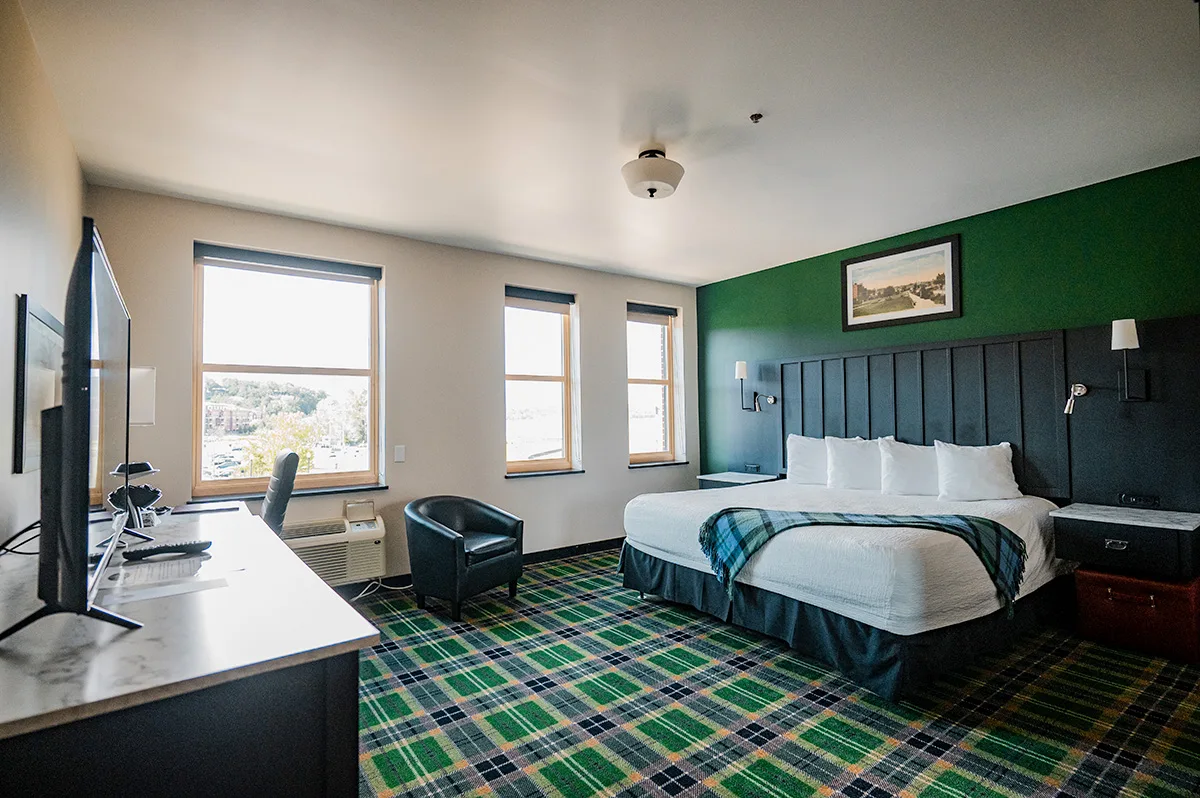 Discover the perfect blend of space and style in our King Rooms, where timeless railroad-era character meets modern ease. Each room is designed with comfort in mind, featuring a luxurious king-sized bed and views of Stillwater’s charming historic district. It’s the ideal setting for a romantic getaway, a relaxing weekend, or an inspired solo adventure.