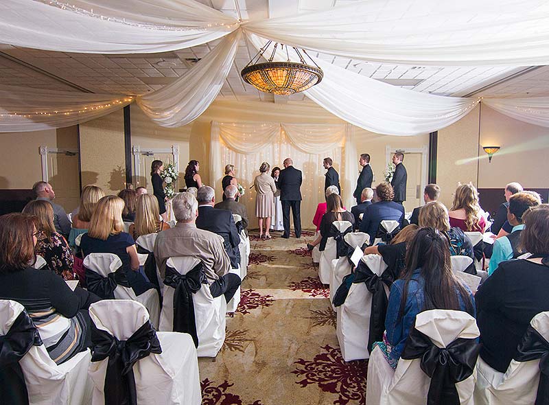 • Our ballroom features a wood dance floor and audio-visual capabilities, making it easy to host an elegant yet lively reception. We work closely with trusted local partners for entertainment, including professional DJs who know how to keep the celebration going all night.